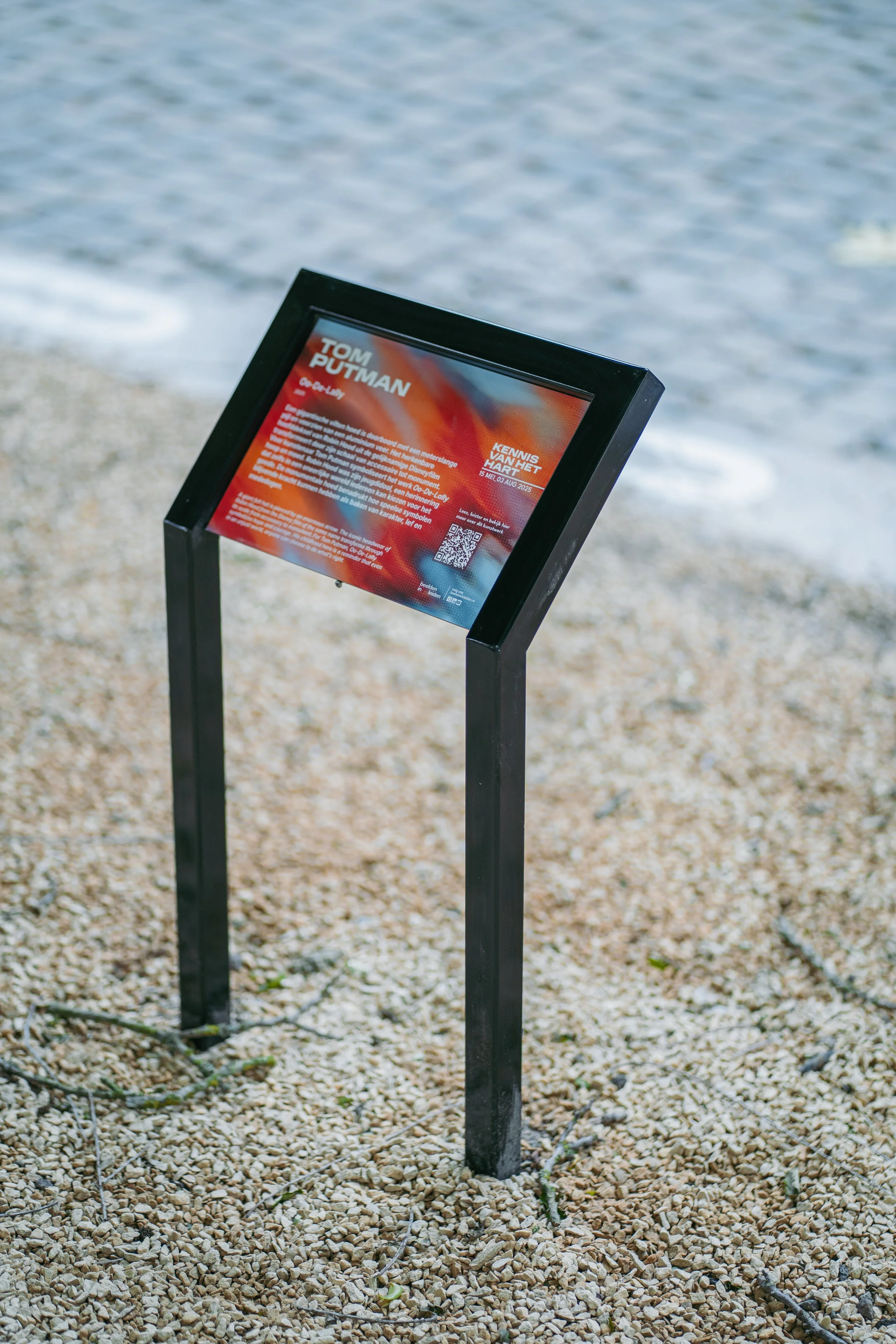 De achtergrond bevat een abstract patroon gebaseerd op een 3D-scan van water, afkomstig uit het werk van kunstenaar Jonathan Vervoort. Zijn sculptuur, geïnspireerd op Leids water, vormen een metafoor voor verandering. Door dit in het ontwerp te verwerken, verbind ik de campagne visueel aan de tentoonstelling zelf.